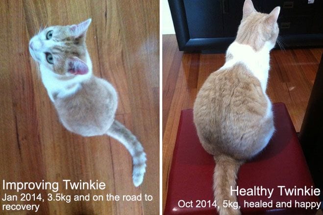 Around October 2013, Twinkie suddenly became very ill. She vomited constantly, was abnormally high strung, drank excessively, cried for food all the time – no, not cry, let’s say screaming – as if she was starving, yet no matter how much she was fed, she dropped weight like it was going out of style.