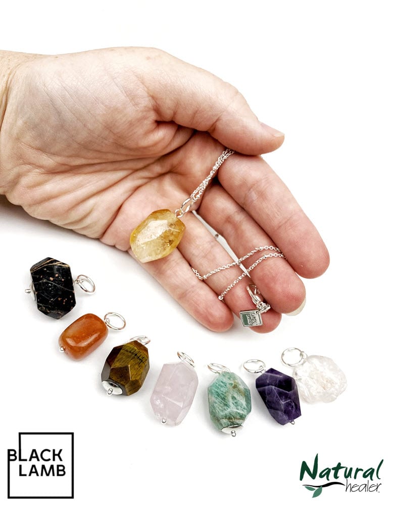 Each stone pendant is hand made by Black Lamb Design and is ideal to: wear during energy healing sessions on yourself or others; use them on an existing bracelet as a dangle; hang them on your nightstand to heal while you sleep; or just wear as a beautiful piece of natural jewelry (with bonus healing benefits!)