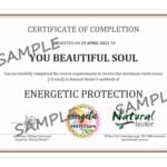 - The completion certificate serves as proof of you learning the skills of Energetic Protection – whether on their own or integrated with your home or work-life.