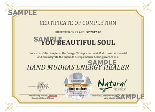 - A beautiful Energy Healing with Hand Mudras Certificate of Completion (PDF) to display in your home or office!