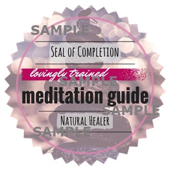A lovely Meditation Guide Certification of Completion (PDF) upon completion to print out if you choose to display it in your healing area or office!