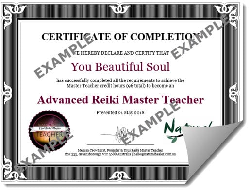 - Advanced Reiki Master Teacher Certificate upon completion (PDF)
